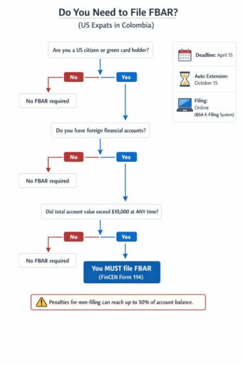US expats in Colombia generally must file an FBAR if they meet the US person, account authority, and reporting threshold requirements.