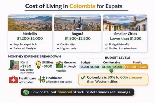 Cities like Medellín and Bogotá differ in cost, especially for housing and healthcare.
