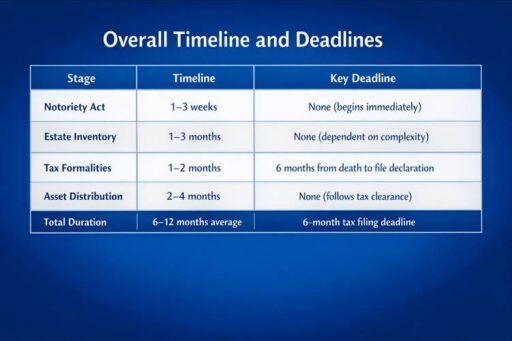 • Estate settlement typically takes 6–12 months.
