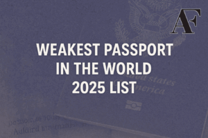 As per The Passport Index’s Passport Power Rank, the 5 weakest passports are Afghanistan, Syria, Iraq, Somalia, and Pakistan.