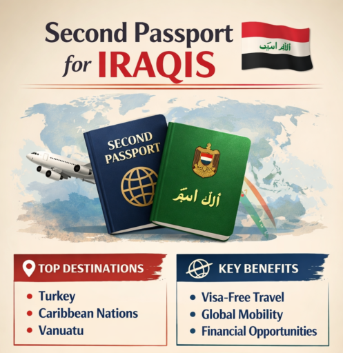 A second passport for Iraq typically involves citizenship options such as Caribbean investment programs like St. Kitts and Nevis or Dominica, Turkey through real estate investment, and fast-track alternatives like Vanuatu,