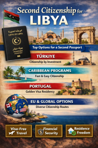 A second passport for Libyans typically involves citizenship pathways such as Turkey, Caribbean citizenship-by-investment schemes like Dominica and St. Kitts and Nevis, or European residency-to-citizenship pathways like Portugal to gain stronger global mobility and long-term stability.