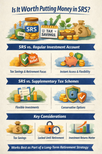 Putting money in SRS can be worth it, but mainly for high-income earners who want to reduce taxes while investing for retirement.