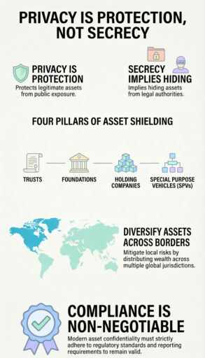 Effective asset confidentiality relies on legal structures, jurisdictional diversification, and compliant reporting frameworks that separate personal identity from asset ownership while remaining fully lawful.