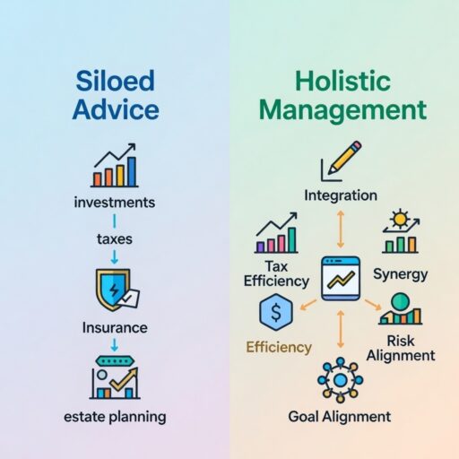 Most investors rely on siloed financial advice—separate advisors for investments, tax, estate, or insurance. Holistic wealth management, in contrast, integrates all aspects of a client’s financial life.